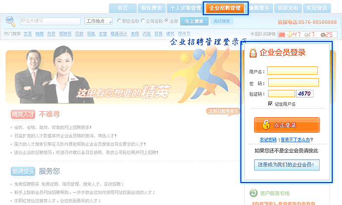 点击导航条,企业招聘管理
