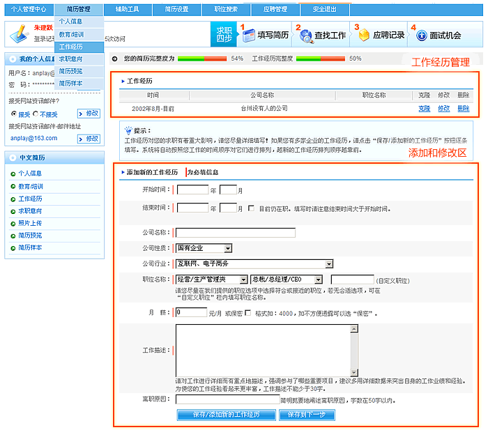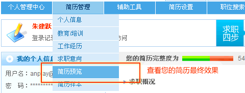 上一页 下一页个人求职管理-简历管理