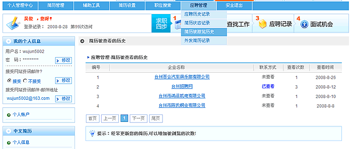 应聘历史记录